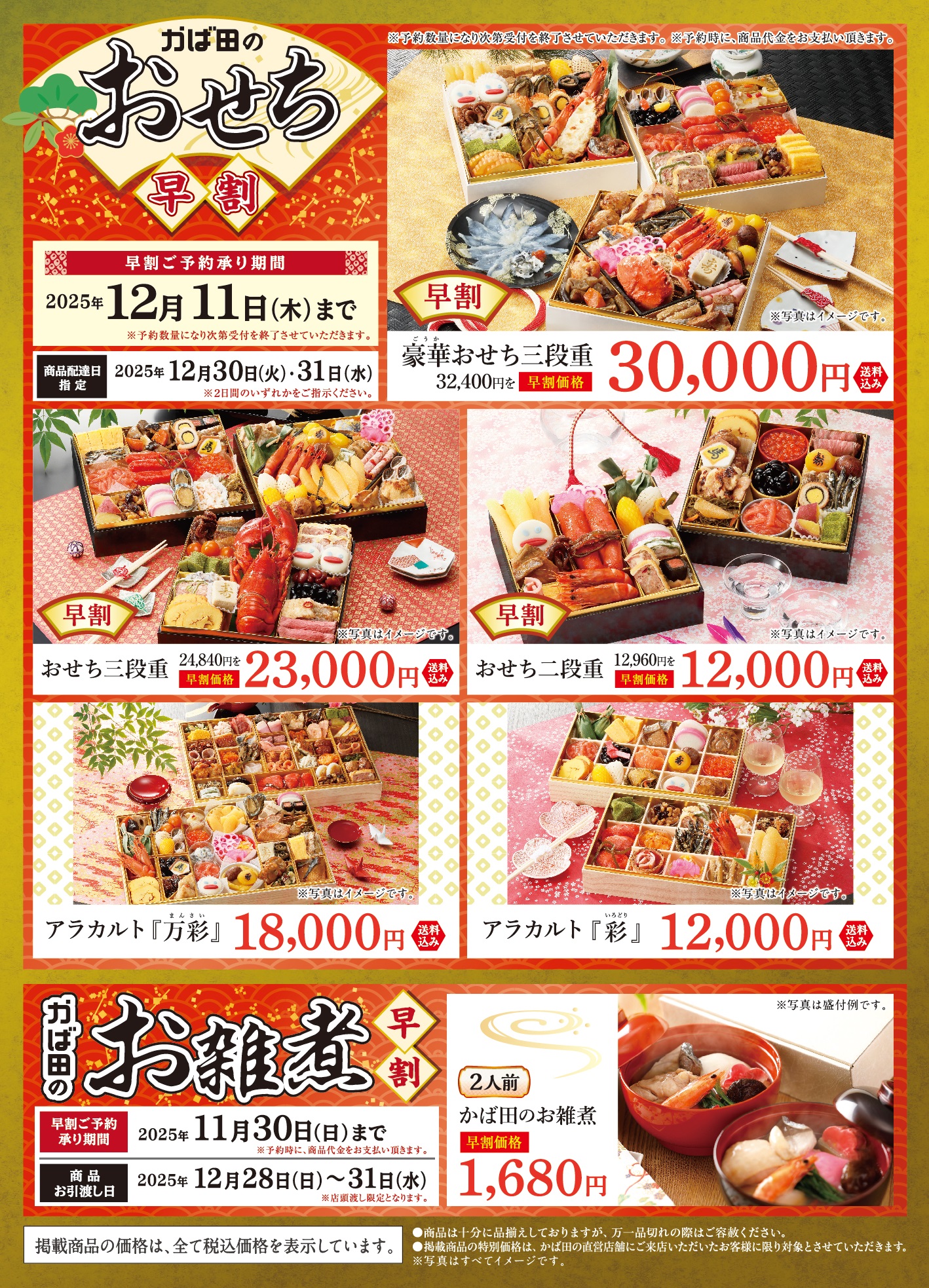 こちらのリンクからネットで注文いただけます。⇒ おせち・お雑煮セット (kabata.com)