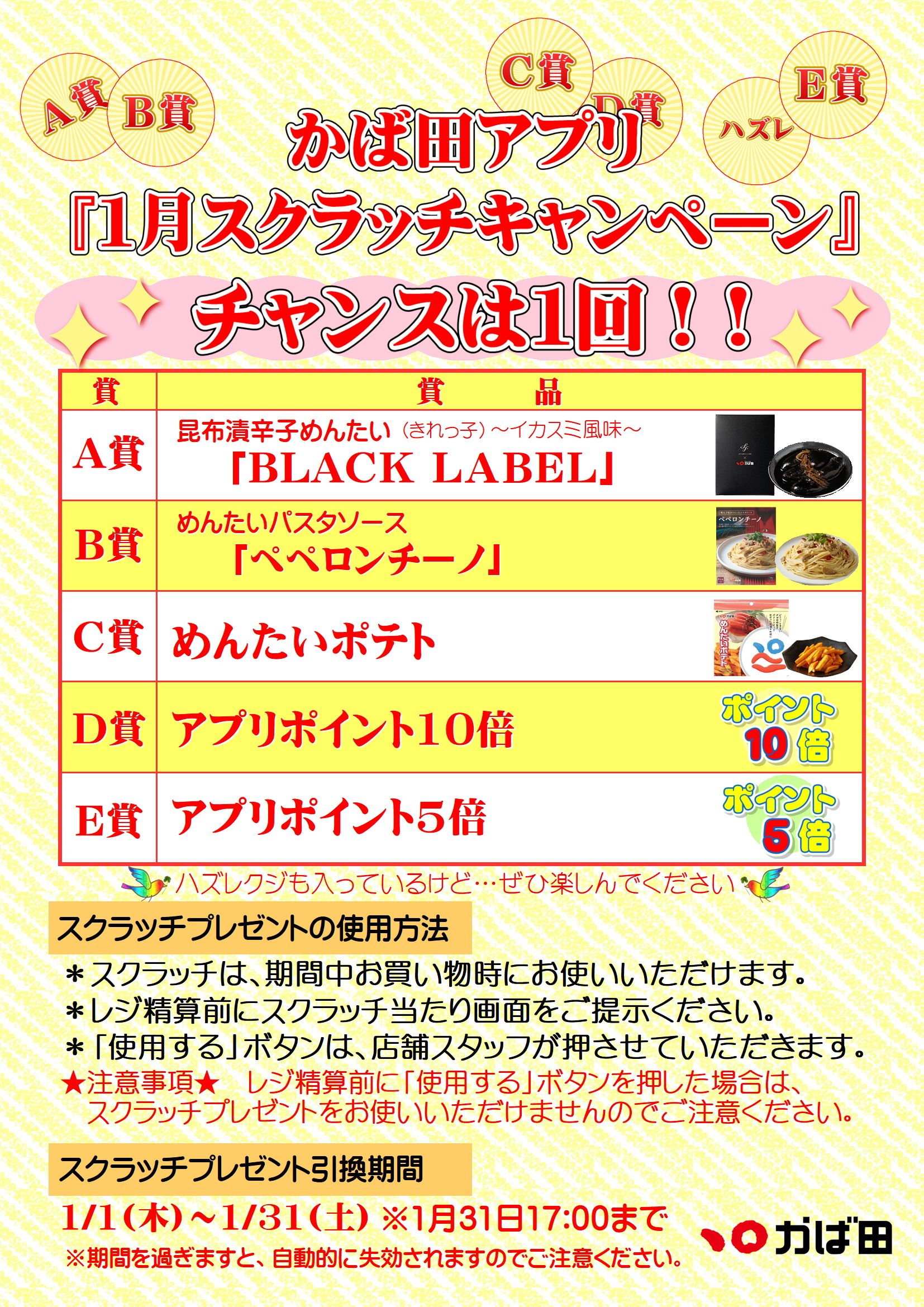 ■スクラッチキャンペーン期間(引換期間) 2026年1月1日~1月31日※1/31の17時まで。期間内にご利用ください。