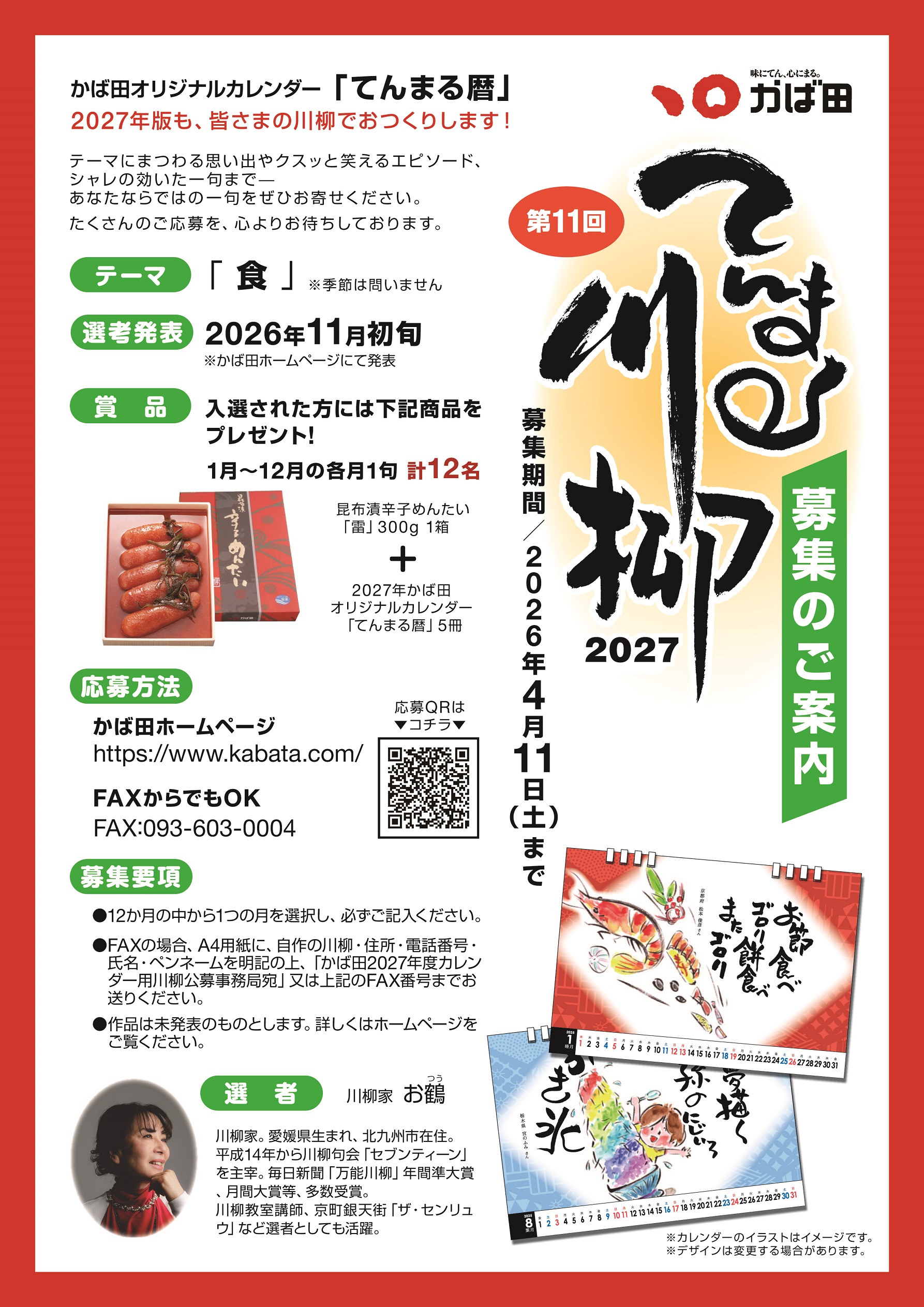 かば田オリジナルカレンダー『てんまる暦2027』を彩る川柳を募集いたします。