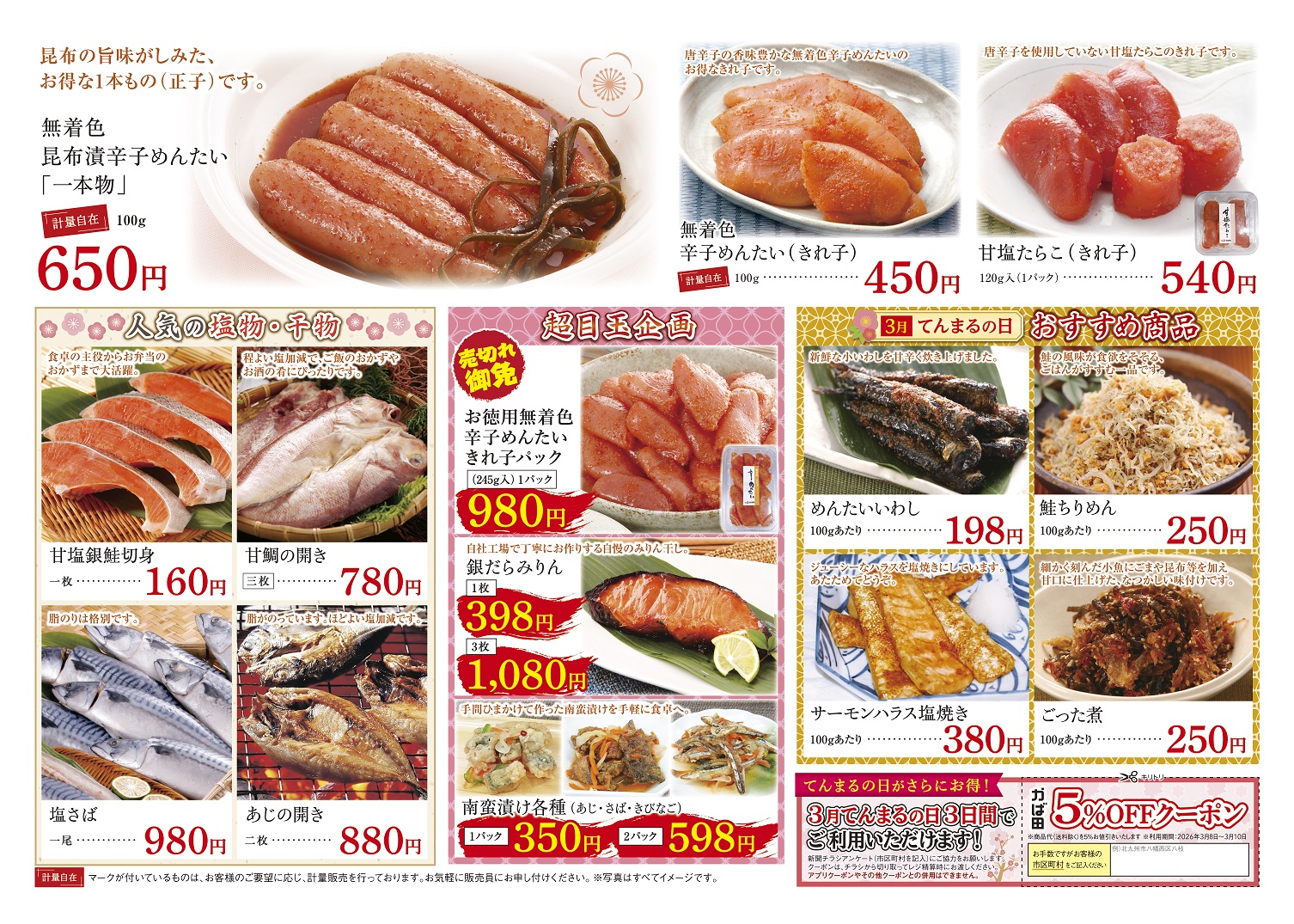 今月も、季節限定めんたい「梅ごよみ」を、お試し価格でご用意しております。